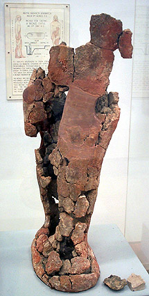 Mould for bronze statueThe clay mould for a bronze kouros. This was found associated with a casting pit on the west side of the agora. The statue may have been for one of the archaic sanctuaries in this part of the agora.