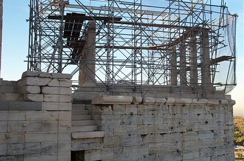 Staircase to the precinct of the temple of Athena Nike. Notice the pilaster on Pier W of the Propylaia.