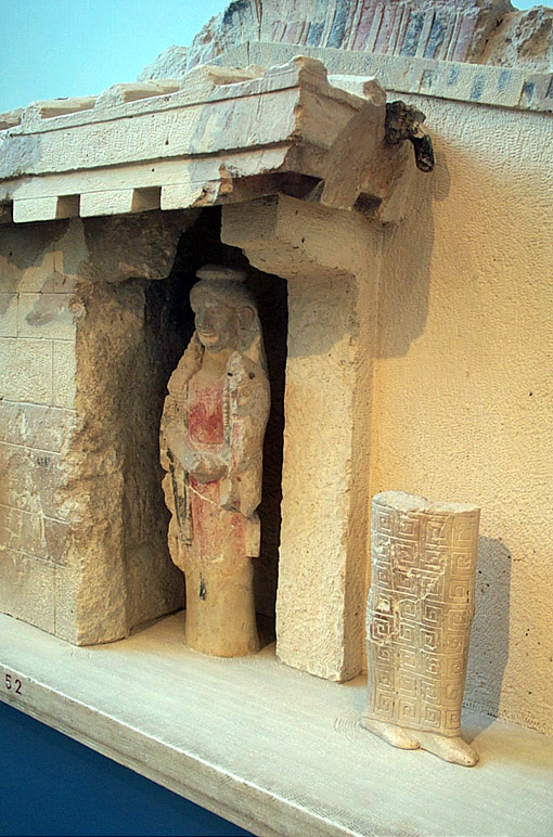 The Olive-tree pedimentAthens, Akropolis Museum 52 Findspot: 'Found in 1888 on the Akropolis, opposite the east front of the Parthenon'. Painted limestone H. 0.80 m BibliographyHurwit, Jeffrey M. 1999. The Athenian acropolis: history, mythology, and archaeology from the Neolithic era to the present (Cambridge: Cambridge University Press) 114, fig. 87 ('c. 550'). Richter, Gisela M.A. 1968. Korai: archaic Greek maidens. A study of the development of the Kore type in Greek sculpture (London: Phaidon Press) 41, figs. 151-154, no. 44 ('about 580-570'). |