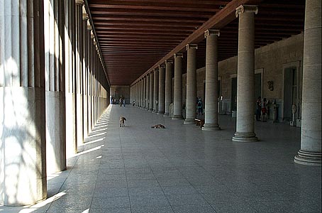 Interior of the stoa looking northwards. Doric columns on exterior, Ionic on interior.