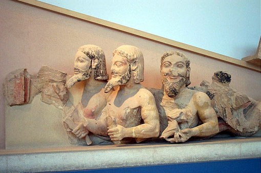 Bluebeard pedimentFrom the pediment of the Hekatompedon. BibliographyHurwit, Jeffrey M. 1999. The Athenian acropolis: history, mythology, and archaeology from the Neolithic era to the present (Cambridge: Cambridge University Press) 108, fig. 79. |