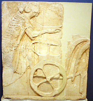 Relief of charioteerAcropolis Museum 1342 H. 1.2 m. Date: 'about 510-500' (Boardman) This is from an Ionic frieze, possible from the Archaios Neos.