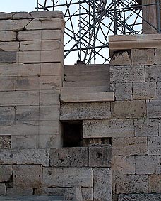 The entrance was located on the north side of the sanctuary giving access to the area in front of the Propylaia.